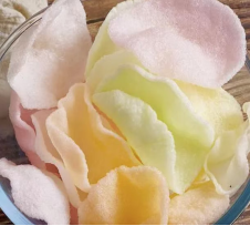 晚加餐:黑芝麻小蛋糕、彩色虾片、燕麦苹果小米粥