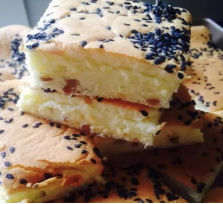 黑芝麻小蛋糕 彩色虾片 燕麦苹果小米粥