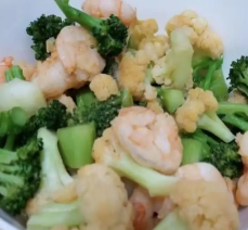 午餐:米饭、山药肉丸煲、虾仁炒双花、八宝粥