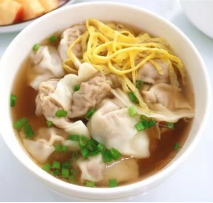 菜叶蛋丝小馄饨 蜂蜜小面包 蒸玉米