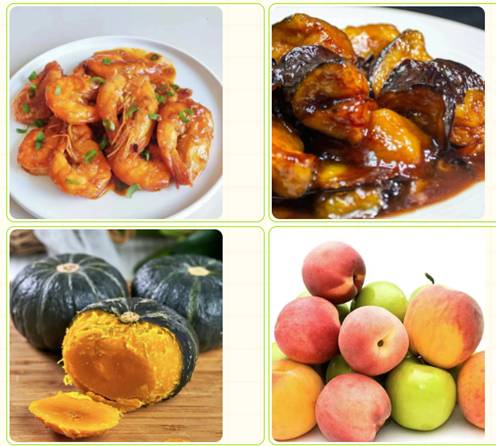 午餐: 奶香小馒头、油焖大虾、红烧茄子、三鲜菌菇汤