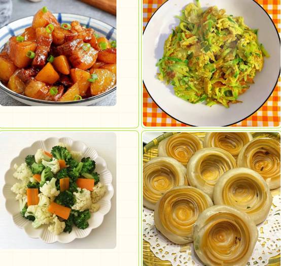 午餐 :米饭、红烧肉炖土豆、爆炒双花、枸杞米面粥