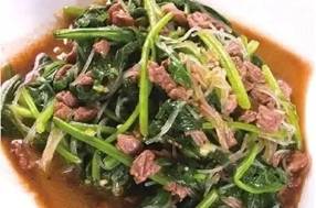 麦仁米饭、孜然羊肉、茭白炒肉丝、时蔬咸粥