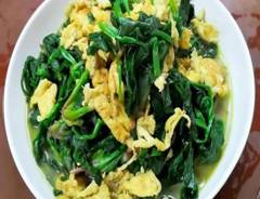 香葱虾皮炒鸡蛋、芝麻花卷香、薯小米粥