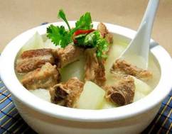 米饭、红烧肋排炖冬瓜、海蛎子豆腐煲、紫菜蛋花汤