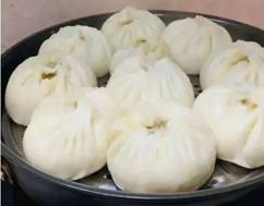 肉蒸包(大白菜、木耳、猪肉)、素蒸包(胡萝卜、鸡蛋)内脂豆腐油菜汤