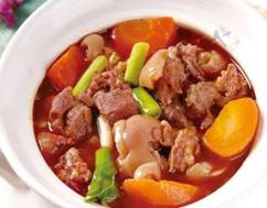 金银米饭、羊肉焖胡萝卜、素炒三彩、三鲜菌菇汤