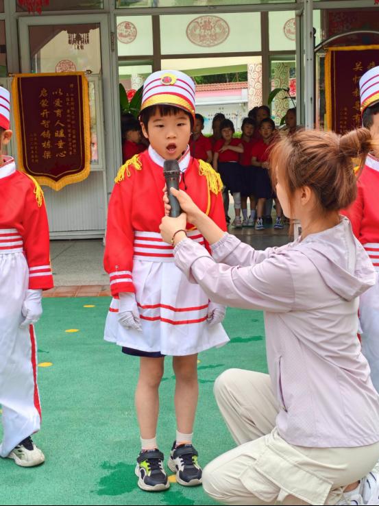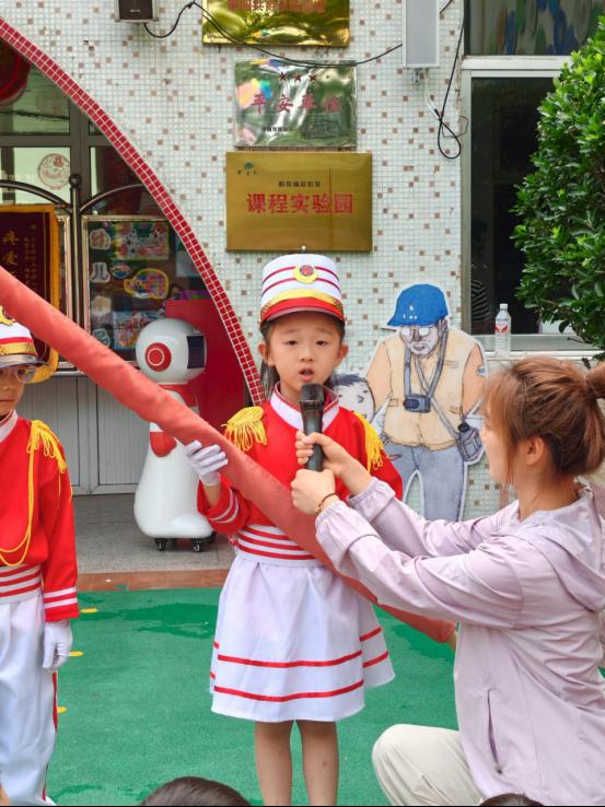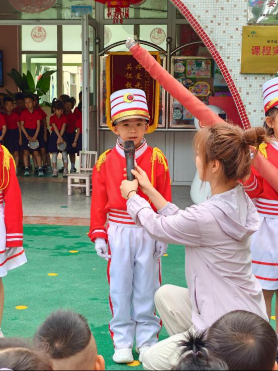 担任本次升旗任务的班级是大一班,升旗手和护旗手分别是:胡宇涵、宁泽汉、孙训一、吴宜娜、于清怀、施家丞六位小朋友。他们着装整齐,步伐矫健,以饱满的热情,庄严地护卫着五星红旗入场。