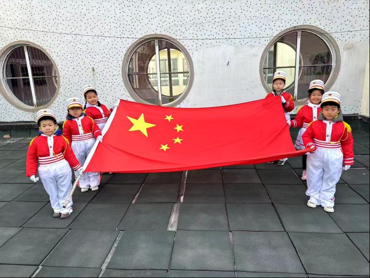 担任本次升旗任务的班级是大一班。小小升旗手和护旗手分别是:俞思羽、于珊、周启航、贾浩洋、吕季昂、施则行六位小朋友。