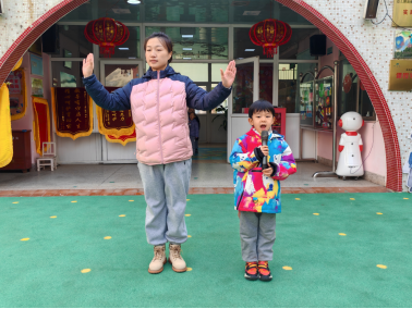 在“国旗下风采展示”环节,大一班小朋友为大家带来了律动表演《给我一个拥抱》,赢得现场老师和小朋友们的阵阵掌声。