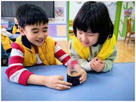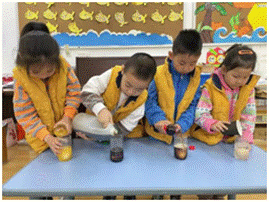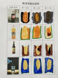 孩子们发现有些小牙发黑变成蛀牙,它们为什么会变成这样呢?让我们通过一个小实验来看一下吧。