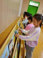 整理好啦~所有绘本都整整齐齐地摆放在书架上。