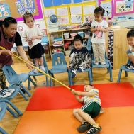 (一)小二班的孩子们和老师共同演练,在游戏体验中掌握了溺水时如何有效自救的方法。