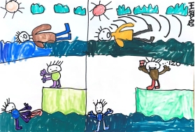 (四)中一班的孩子们在讲述绘本故事的同时,进一步加强了防溺水的自我保护意识。